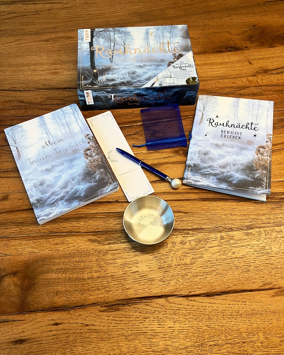 Erlebe die Magie der Rauhnächte auf ganz besondere Weise – mit der wunderbaren Rauhnächte-Box, die Dich achtsam durch die zwölf heiligen Nächte vom 25. Dezember bis 6. Januar begleitet.